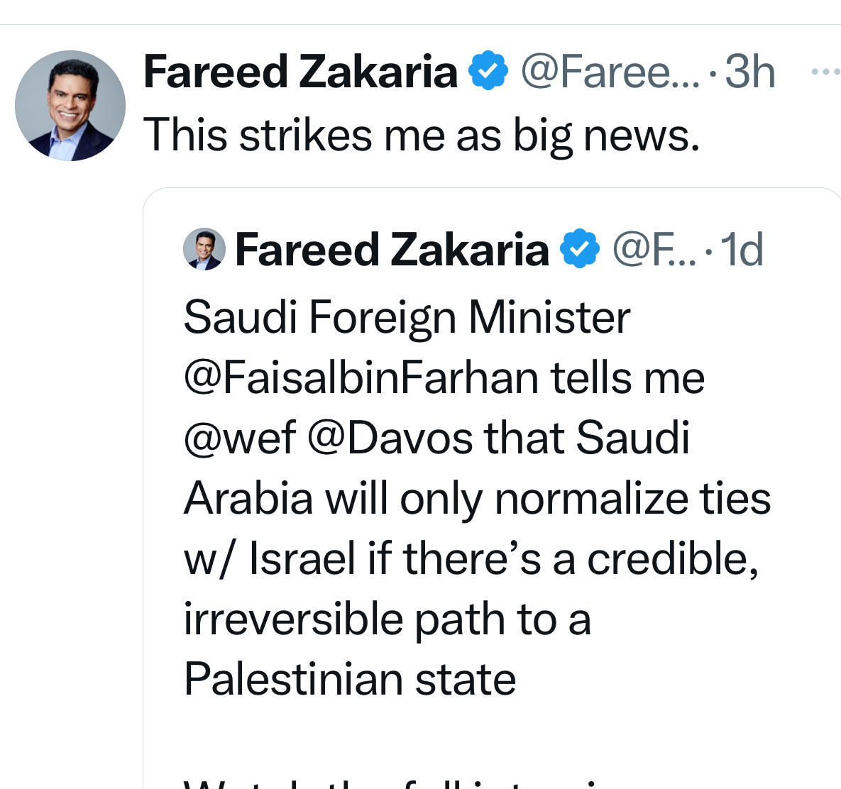 U.S. Secretary Antony Blinken reiterated in a talk at Davos that a pathway to statehood for Palestinians could help improve Israel’s security and its relations with other countries in the region. But Netanyahu tells Blinken/Biden, he won’t have any of it.